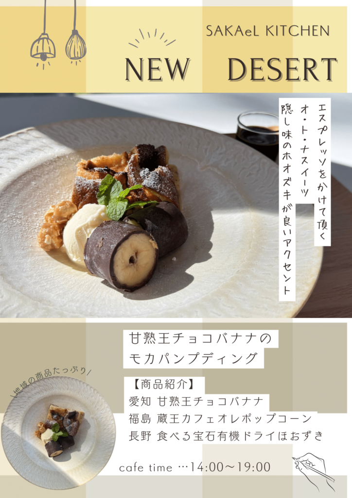 11月からSAKAeL KITCHEN(SAKAeL MARCHE内)で提供しているカフェメニューのお知らせです。
