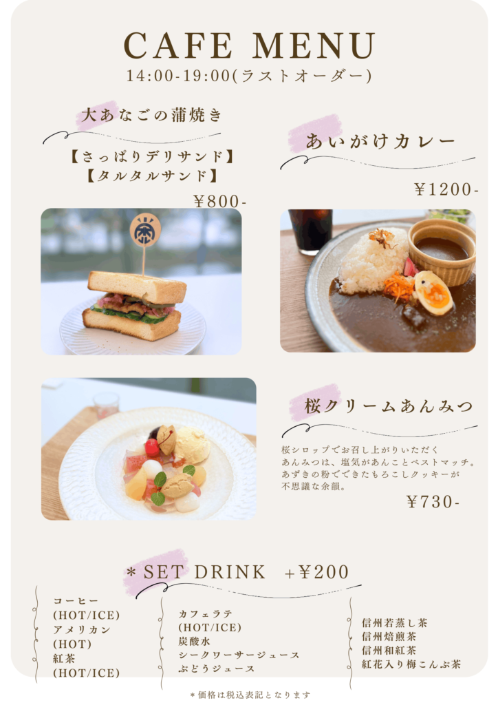 4月からSAKAeL KITCHEN(SAKAeL MARCHE内)で提供しているカフェメニューのお知らせです。