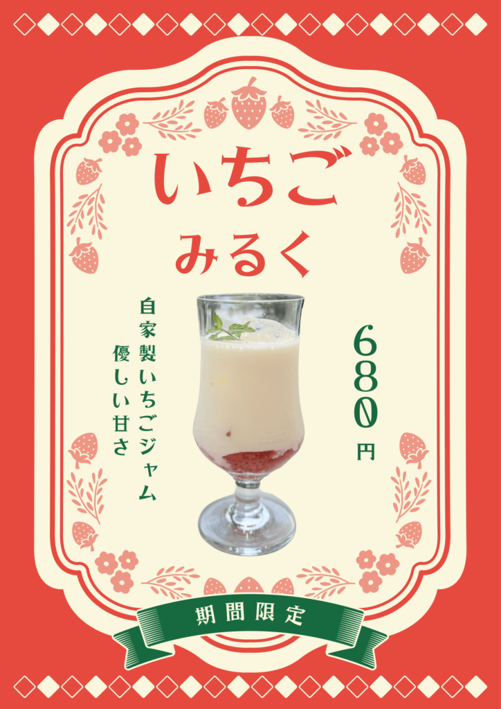 果肉感をしっかり残した自家製いちごジャムを、北海道産の牛乳でシンプルに仕上げました。