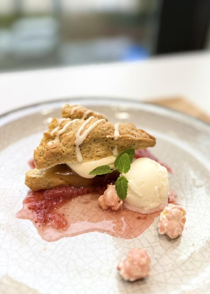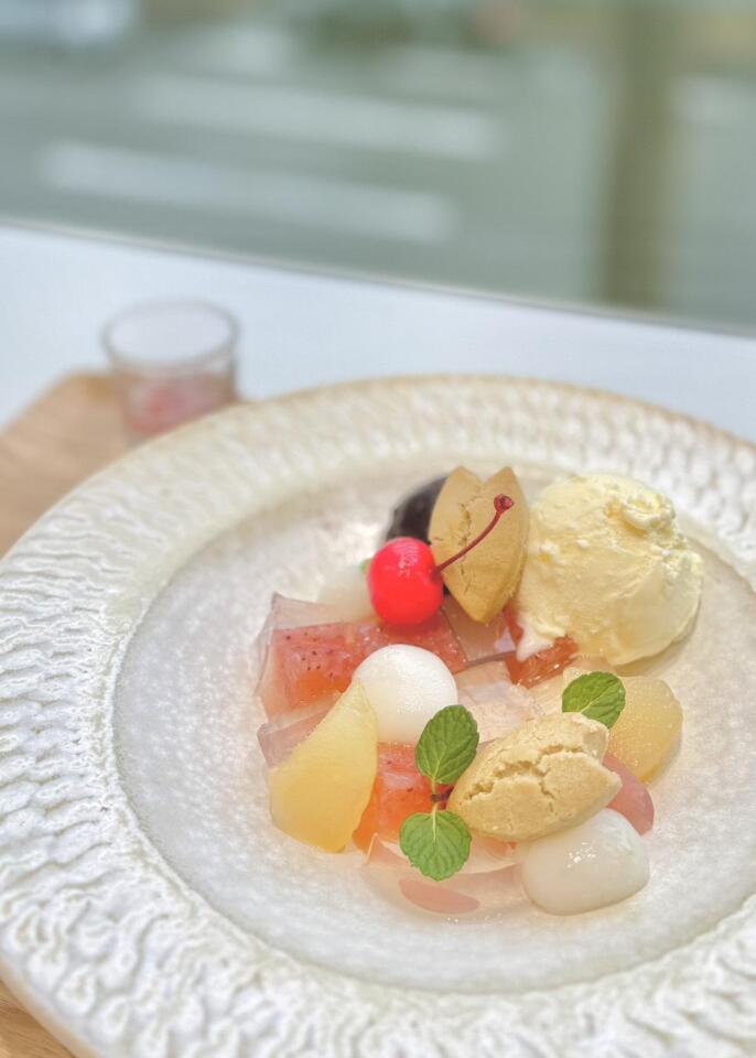 ヨーグルトアイスのさっぱり感が重なり、ちょっと贅沢なひと皿に仕上げました。